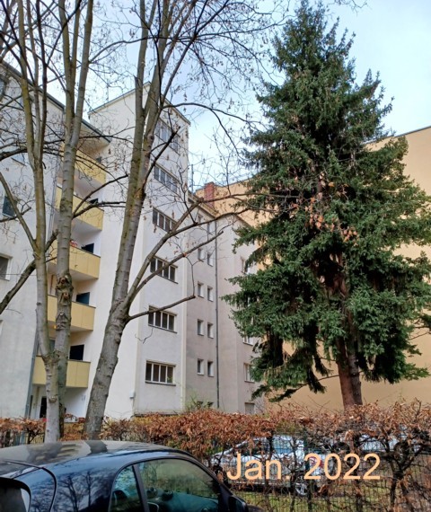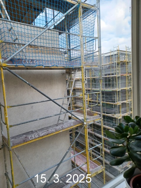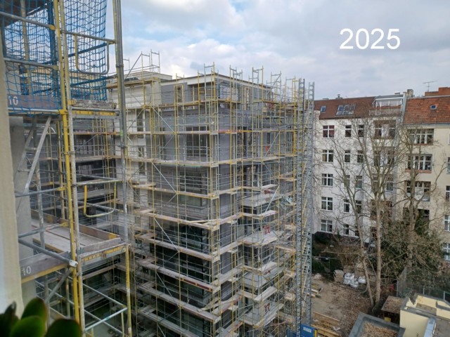 Wir alle haben den Eindruck, dass überall in Berlin gebaut wird und dass wir immer mehr eingemauert werden in Stahl, Beton, Glas und Holz. In unserem ehemals parkähnlichen Karree entsteht jetzt das 3. fünfgeschossige Haus, dem das Grün im Karree weichen muss. Gebaut werden überwiegend teure Miet- und Eigentumswohnungen. Der Nachbar, der nun damit beginnt, die Wiese zu bebauen, stellt sich vor, dass er dort für 90 qm Wohnraum etwa 4.000 € Miete / Monat bekommt (was wir hier etwa pro Jahr bezahlen) und freut sich schon riesig darauf.